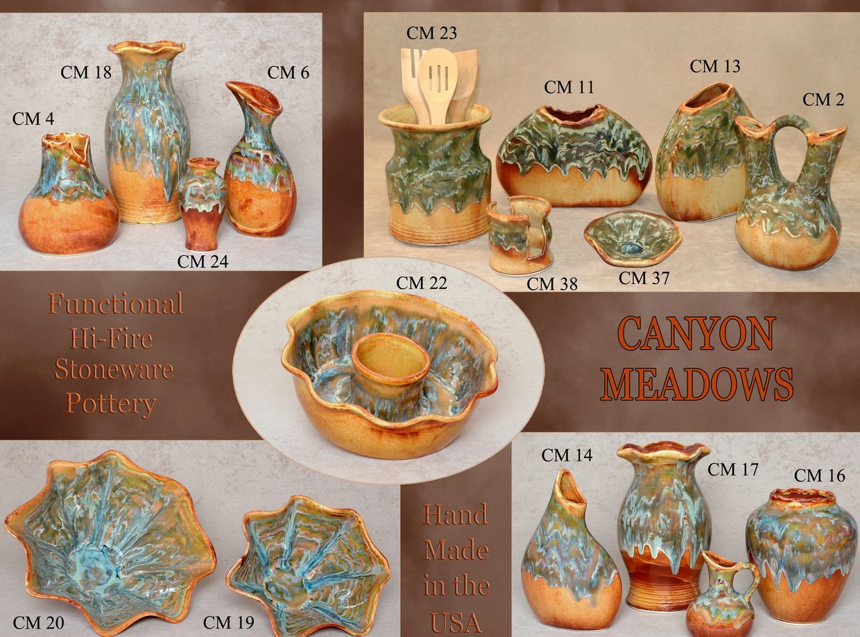 Tap the RED LINKS below to order & view single items. Read MORE for About Canyon Meadows Pottery below.