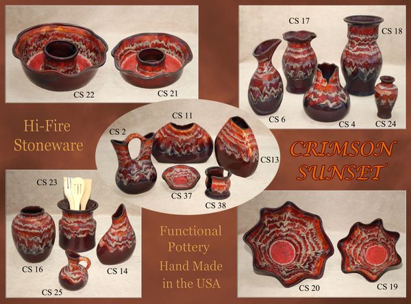 Tap the RED LINKS below to order & view single items. Read MORE about Crimson Sunset Pottery below.