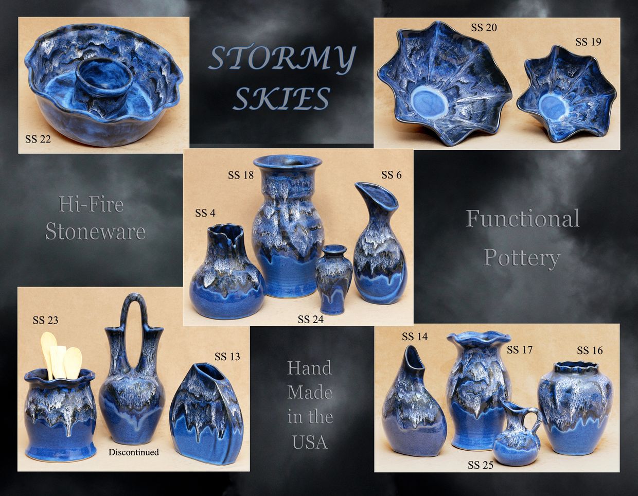 Tap the RED LINKS below to order & view single items. Read MORE About Stormy Skies Pottery below.
